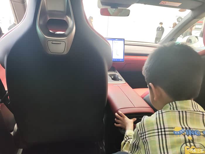 孩子在展厅研究这个冰箱和电动后备箱,已经喜欢上su7了