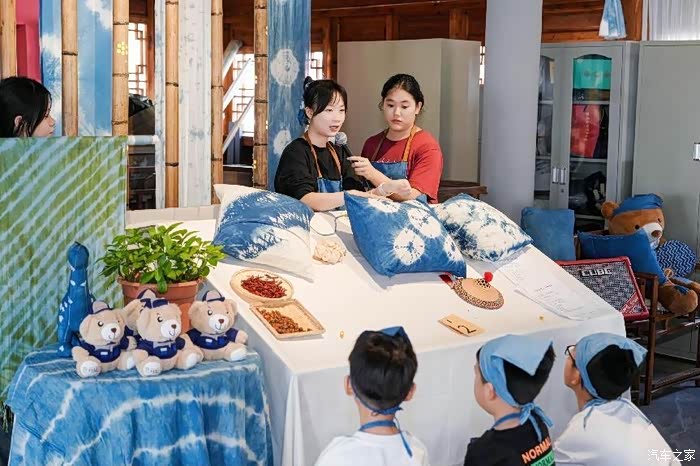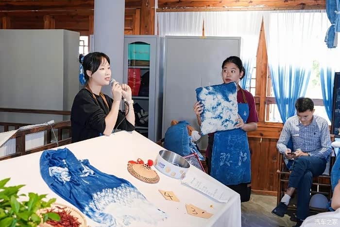专业的非遗大师们正在讲解扎染的来由和制作过程,告诉大家要如何才能解锁独一无二的扎染图案。