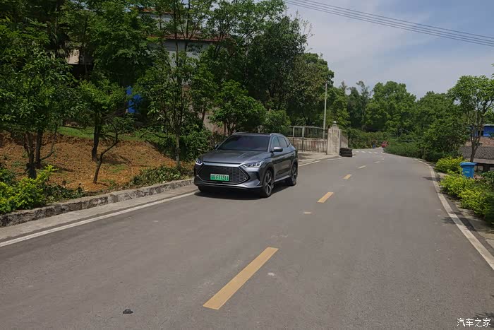 4、整台车看起来个头大,实际质感、方向手感都是偏轻柔,加上平顺线性的加速,整个驾驶感受完全不像开SUV。不过坐姿很高,视野开阔,加上坐椅包裹支撑比较到位,开起来还是比较轻松。刹车的行程偏长,急刹需要踩深一些;