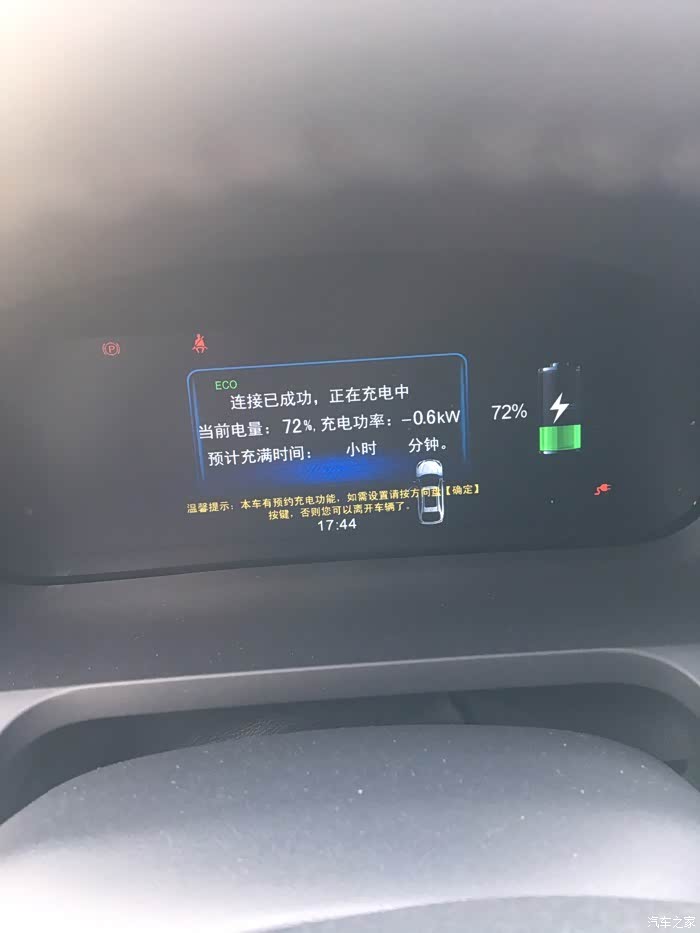 回家后充电发现开始充电功率是3kw左右,后来就一直是1.6kw左右,充电时间自然就要翻倍了,至于为什么会降低功率充电,问了售后(完全不专业),直接叫去4s店检查,不太认为4S店能搞定。