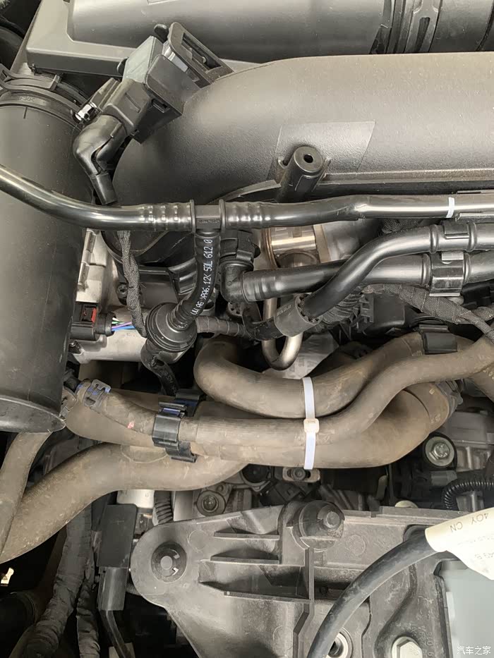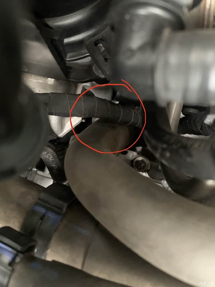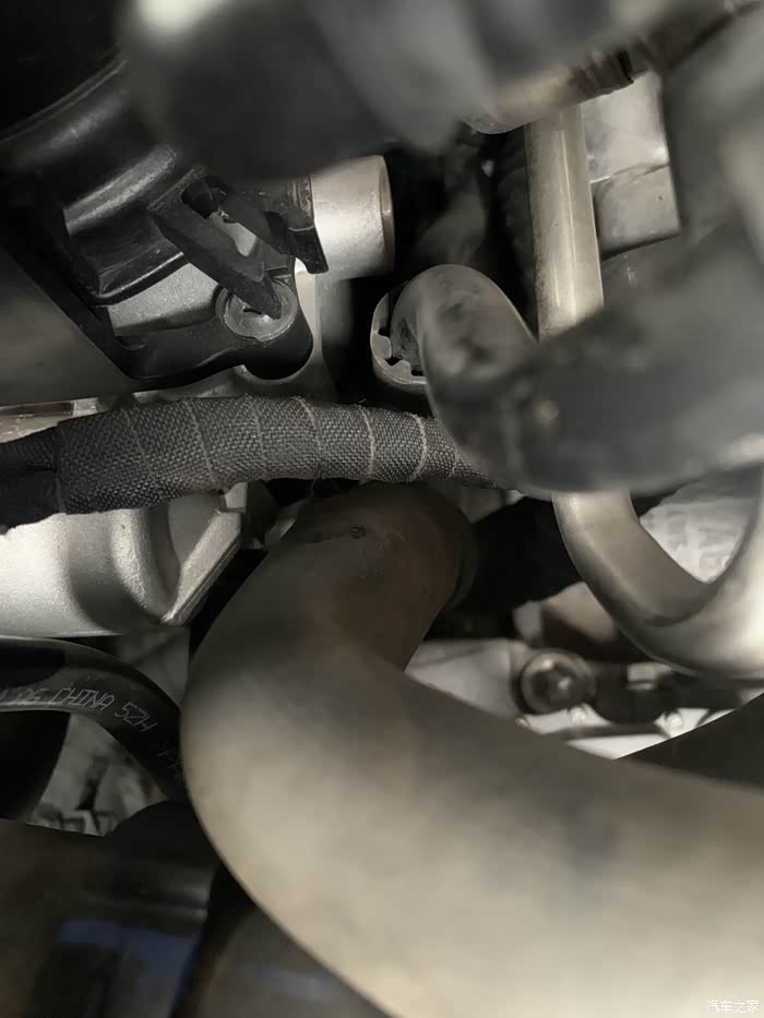 今天打开机舱检查机油的时候发现发动机的线束和水管之间干涉有摩擦,时间久了会有一定安全隐患,用扎带绑处理一下,