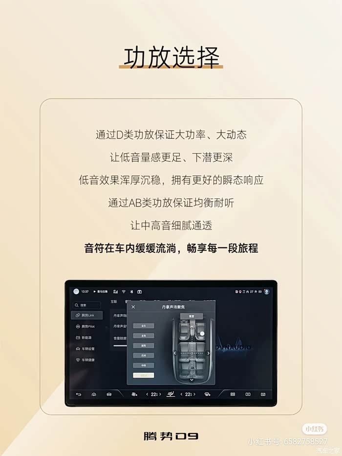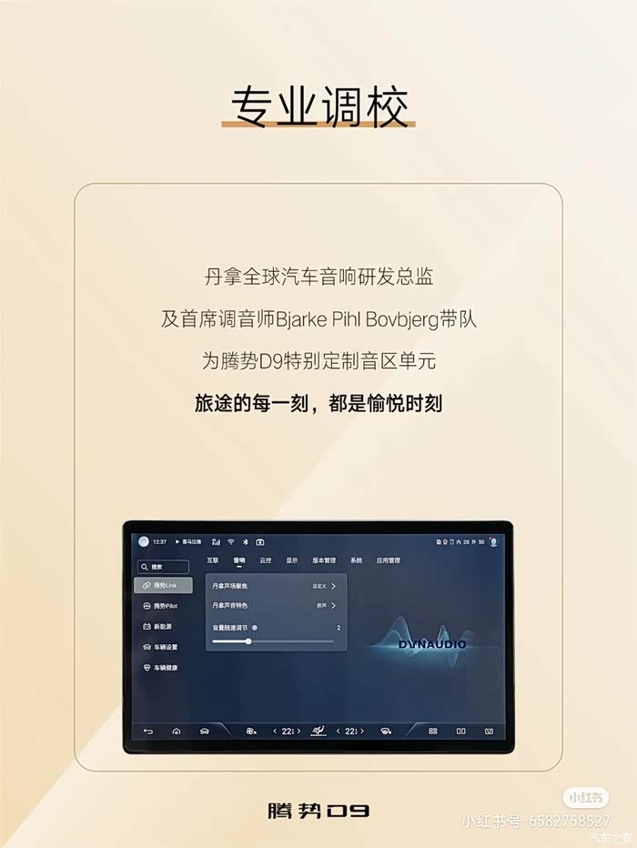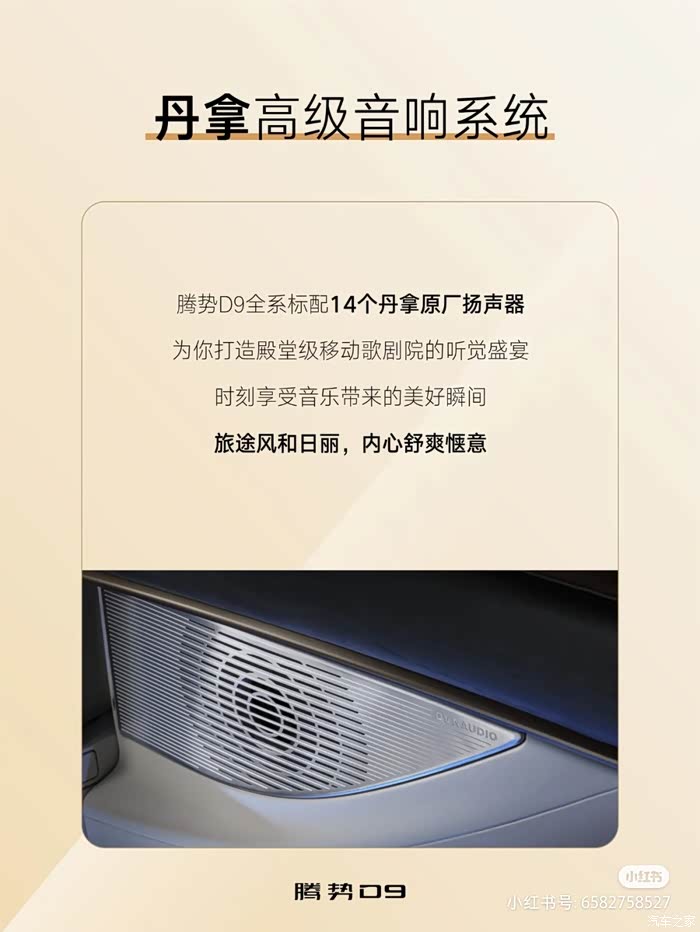 开着D9去旅行吧,把移动的Livehouse搬进车里享受丹拿音响带来的澎湃声效ヶ城市的喧嚣渐行渐远,耳朵和心情都慢慢舒适腾势D9全系标配14个丹拿原厂扬声器打造殿堂级移动歌剧院皇100分原声、120分沉浸在D9邂逅天籁,随【声】出行不要太惬意