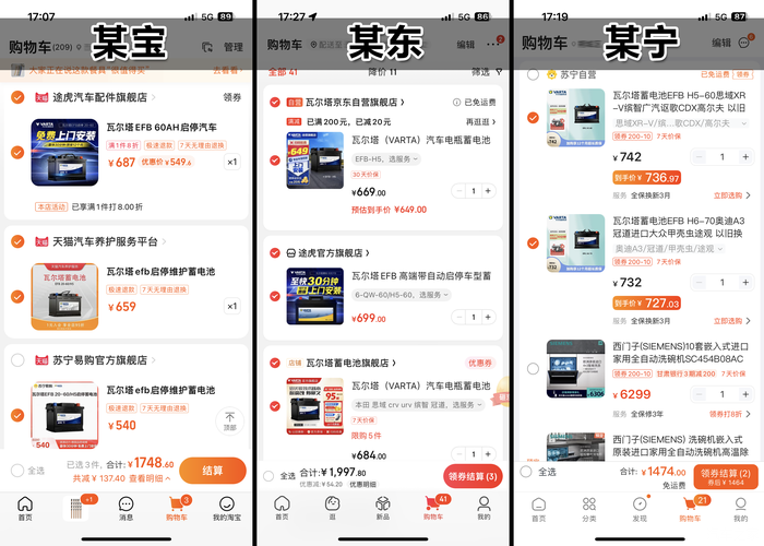 再来看看某些电商平台的价格,这款瓦尔塔EFB H5 6-QW-60(640)-L(12V 60Ah 640A)最低540元,5月4日截图,当然这些价格都是提供上门安装服务的,看你怎么取舍了。