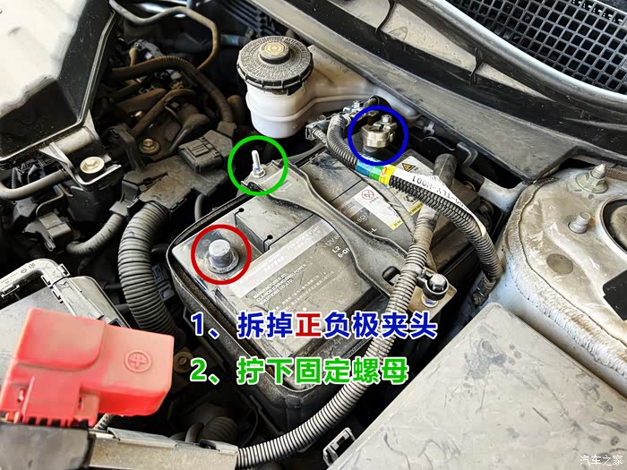 先拆负极,再拆正极,这样可以避免短路,再拧固定螺母。