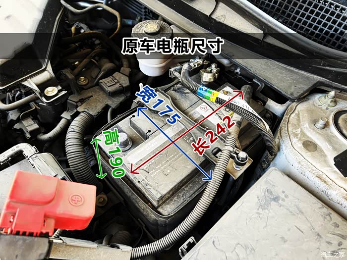 原车电瓶尺寸:长242mm、宽175mm、高190mm。
