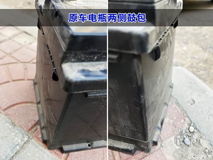取下电瓶后发现电瓶两侧鼓包了,开头写到充电器的电压为15.65V,可能是充电电压太高导致电瓶夭折的根本原因。