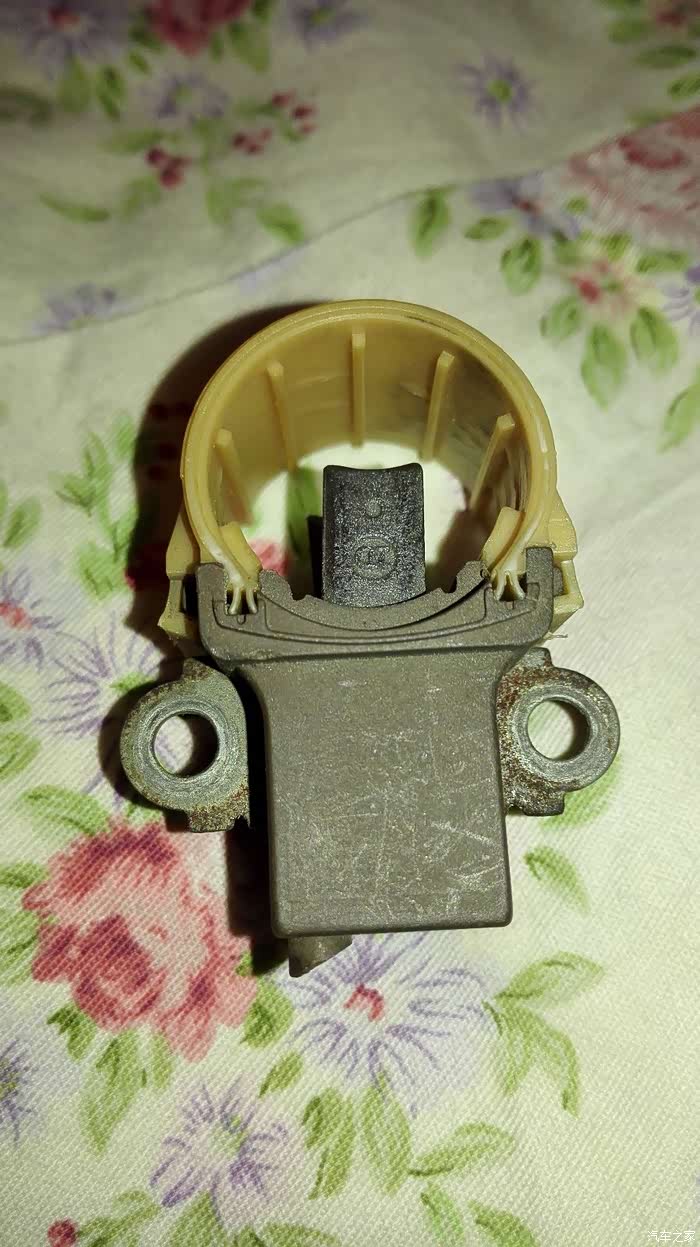 2018年元月1日,准备出去转转,从停车场取车,放到楼下,一切正常。然后上楼取个东西,再启动车,报“发电机故障请维修”,重新启动,断电瓶负极均无效,故障报警不消失。目前公里数9.7万公里。取出万用表,测量电瓶两端的电压,11.9V 只是电瓶的电压,发电机不工作,心想会不会是碳刷坏了。论坛有人开了快20万公里,拆开检查发电机碳刷才快磨损完了,我才9.7万,不会这么早就把碳刷磨损完了吧,于是拿出工具,打开发电机后盖检查碳刷磨损情况,拿出碳刷一看,里面全是碳刷粉,碳刷已经磨损完了,没有办法,看看铜滑环磨损的还行。去汽配城买碳刷吧,到汽配城卖发电机的地方,问了一下,华川或法雷奥的 120A的发电机价格在580元左右,碳刷没有,找了几个店铺,有一家说有,看看还行价格20元,建议大家最好买石墨多的碳刷,高铜碳刷对电机滑环磨损太大,滑环磨损完了,可不好更换,要解体发电机的。华川的发电机碳刷和法雷奥的碳刷不一样。买完碳刷马上装车,启动后故障排除。哎问题解决。 还有个小插曲,本来想把发电机卸下来 保养一下,结果,卸掉发电机的上下两个固定螺丝以后,死活取不下发电机,实在没有办法,又不敢硬撬,害怕把发电机铝支架弄断可真麻烦了。安装螺丝的时候,下面的安装孔错位了,螺丝穿不进去,哎对了1个小时才穿进去,发电机真难卸。更换检查碳刷不用卸发电机的,直接取下插头和电缆,卸下后盖直接可以更换碳刷,这个设计比较人性化。下面上图。