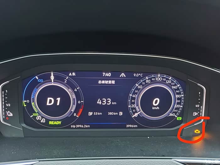 今天发现发动机灯一直亮着,新车两个月,跑了4000公里,充满电跑的纯电模式,开gte模式和混动模式,发动机运行正常,但是发动机灯还是亮着,车友们,看一下你们的仪表盘是怎样的