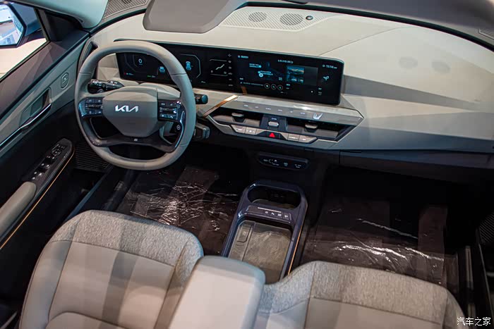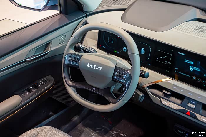 起亚EV5 720长续航版拥有母婴级的智能座舱,内饰材料皆基于可持续发展和对人体健康呵护的理念,确保车内空气质量时刻清新。中控台布局简洁明了,27英寸级一体式三联屏操作流畅、功能丰富。