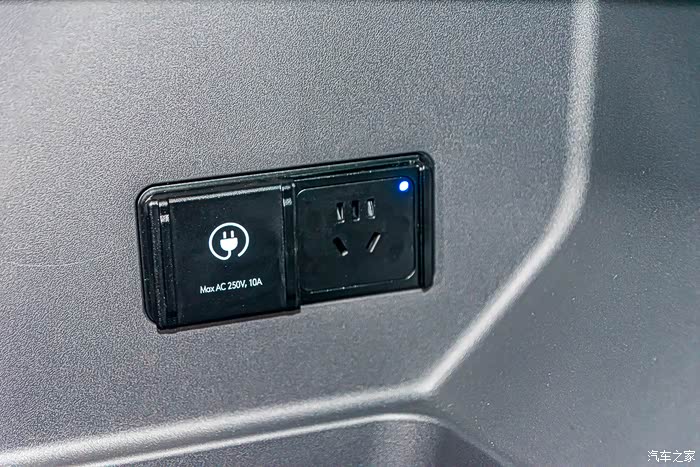 居然配备了250V家用电源,五孔插座。可以给各种电子产品充电,在户外用电无忧。对于喜欢摄影、航拍的爱好者来说再也不用担心电池电量的问题了,车本身就是一个超大的充电宝。