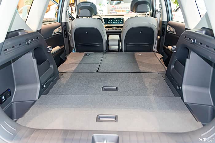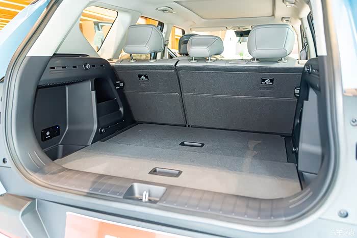 这是常规状态下后备厢容积为513L,开口大、地板平整,满足家用完全不在话下。下一秒还能秒变大床。