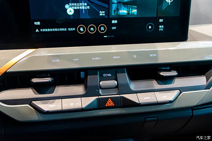 空调调节采用实体按键,风向也是手动调节的。我给好评,实体键总归比触摸和语音好用。