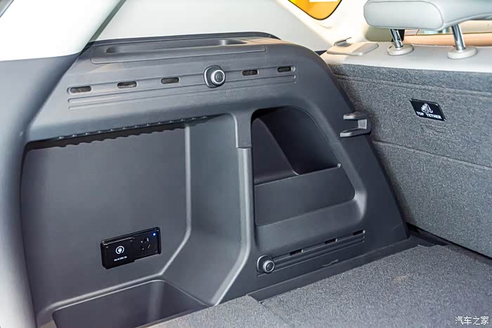 后备厢两边侧壁设有储物格,上下还有锚点,配合网兜固定一些小物品太好用了。