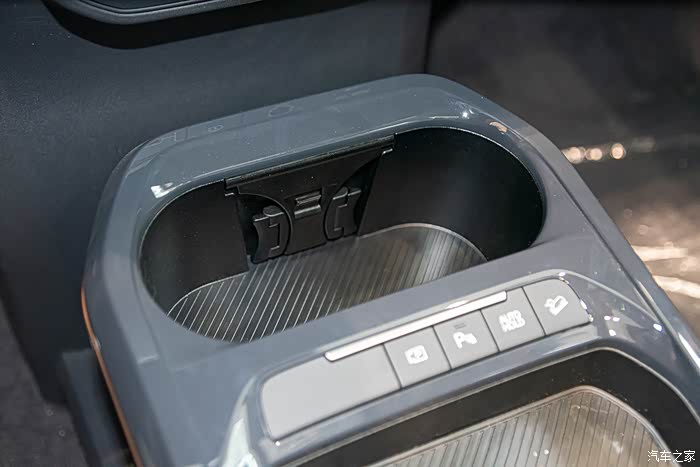 前排杯架的设计都充满巧思,这是杯架状态。