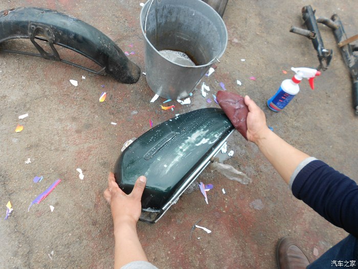 砂纸打磨油箱!