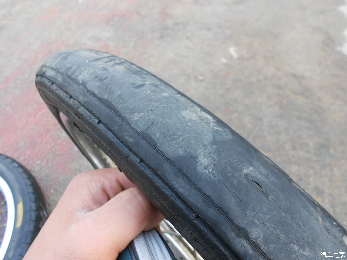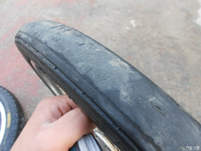 前轮磨平了 换 ,不知道的以为是赛道专用胎