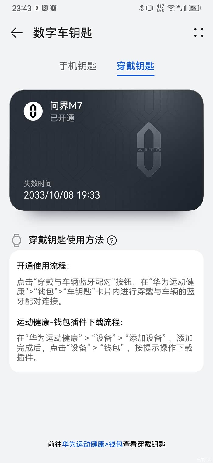 第3步,便是车辆功能讲解了。我的华为MATE30手机和华为WATCH3手表可以添加电子钥匙,打开NFC功能,直接刷左侧后视镜背面就可以解锁、启动车辆。功能讲解期间,临牌也打好了。
