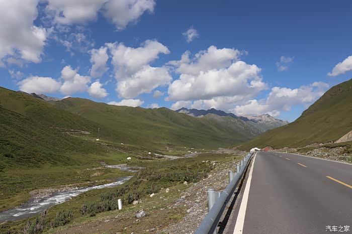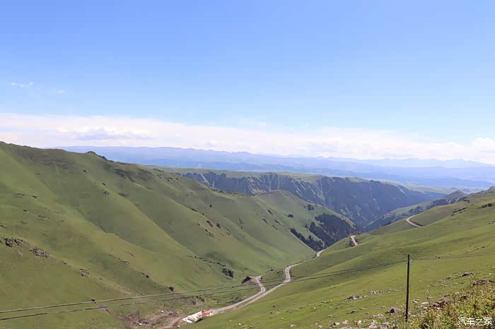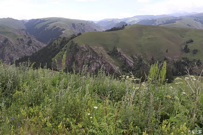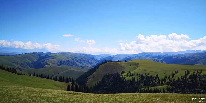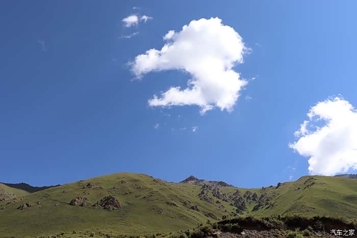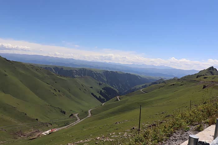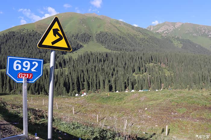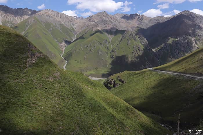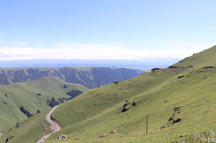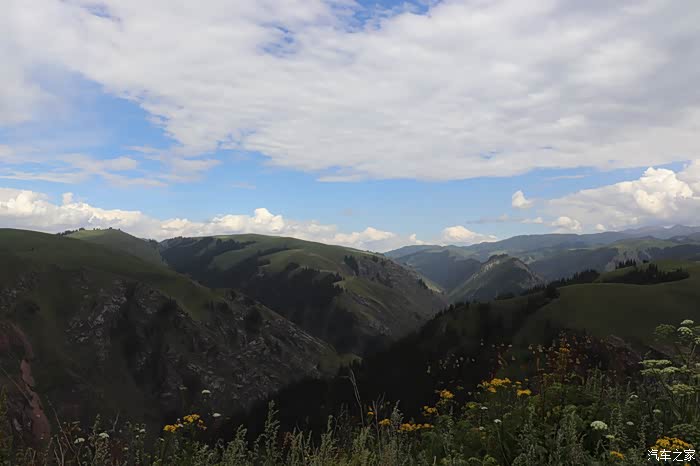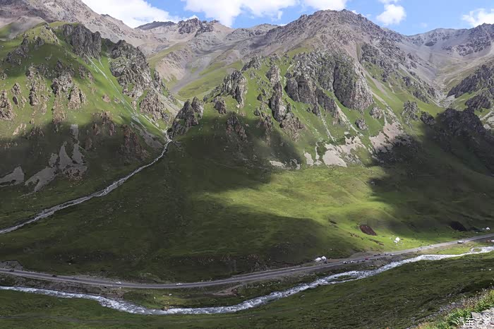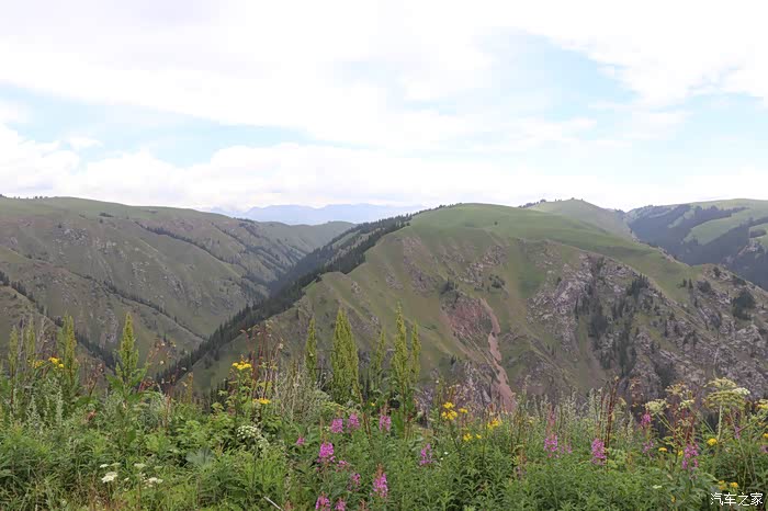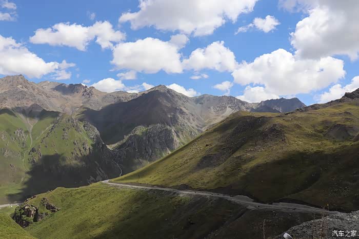 这里是我们在那拉提停留最久的地方,也是我认为最美的地方了。前景是公路,远景是山峦,背景是白云与蓝天。