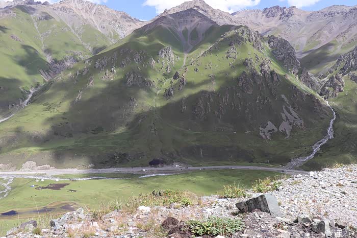 那拉提至乔尔玛段先要经过一片辽阔的草原,接着便进入了一片崇山峻岭中,山体褐色的岩石尽是岁月的痕迹,诉说着天山久远的历史,在路上行驶时还可以隐隐看到远处山顶有白色的积雪。