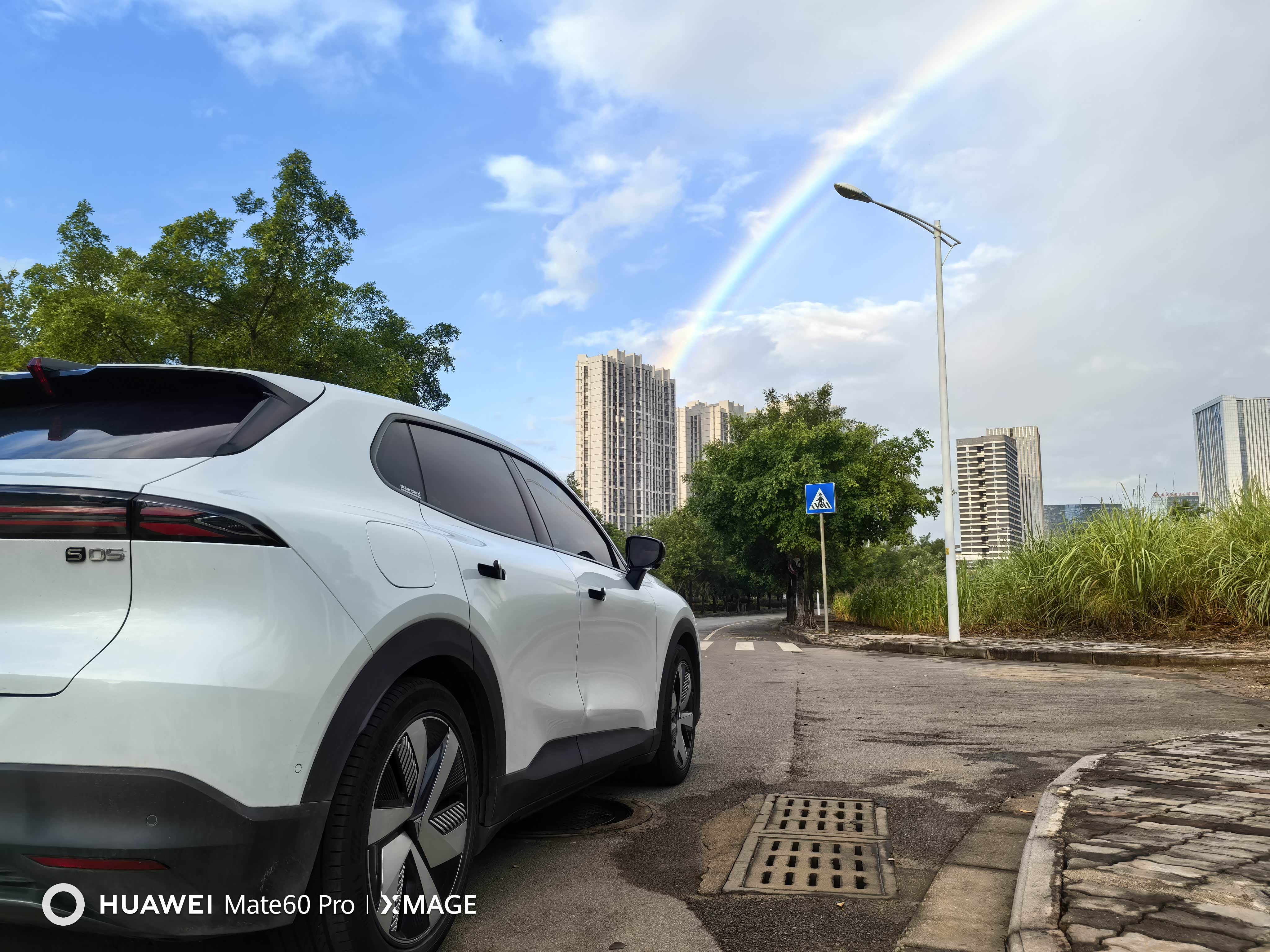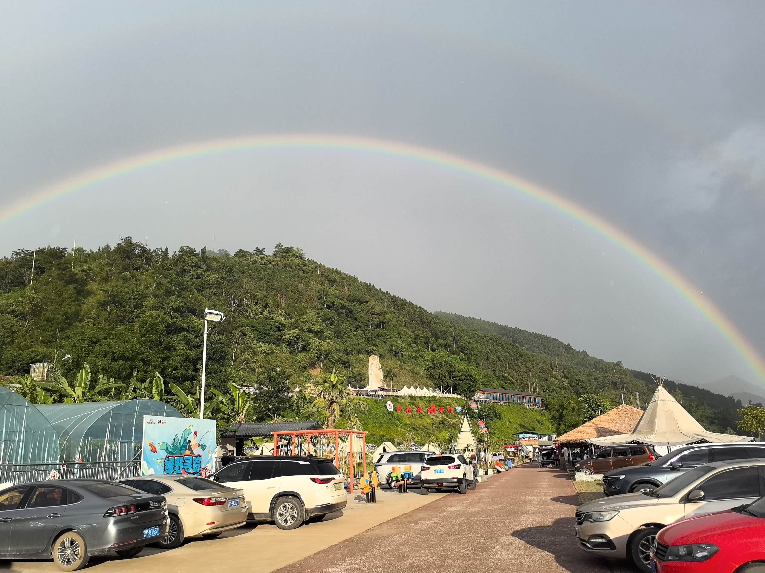 出行前见天公作美,整个天空,被彩虹环抱