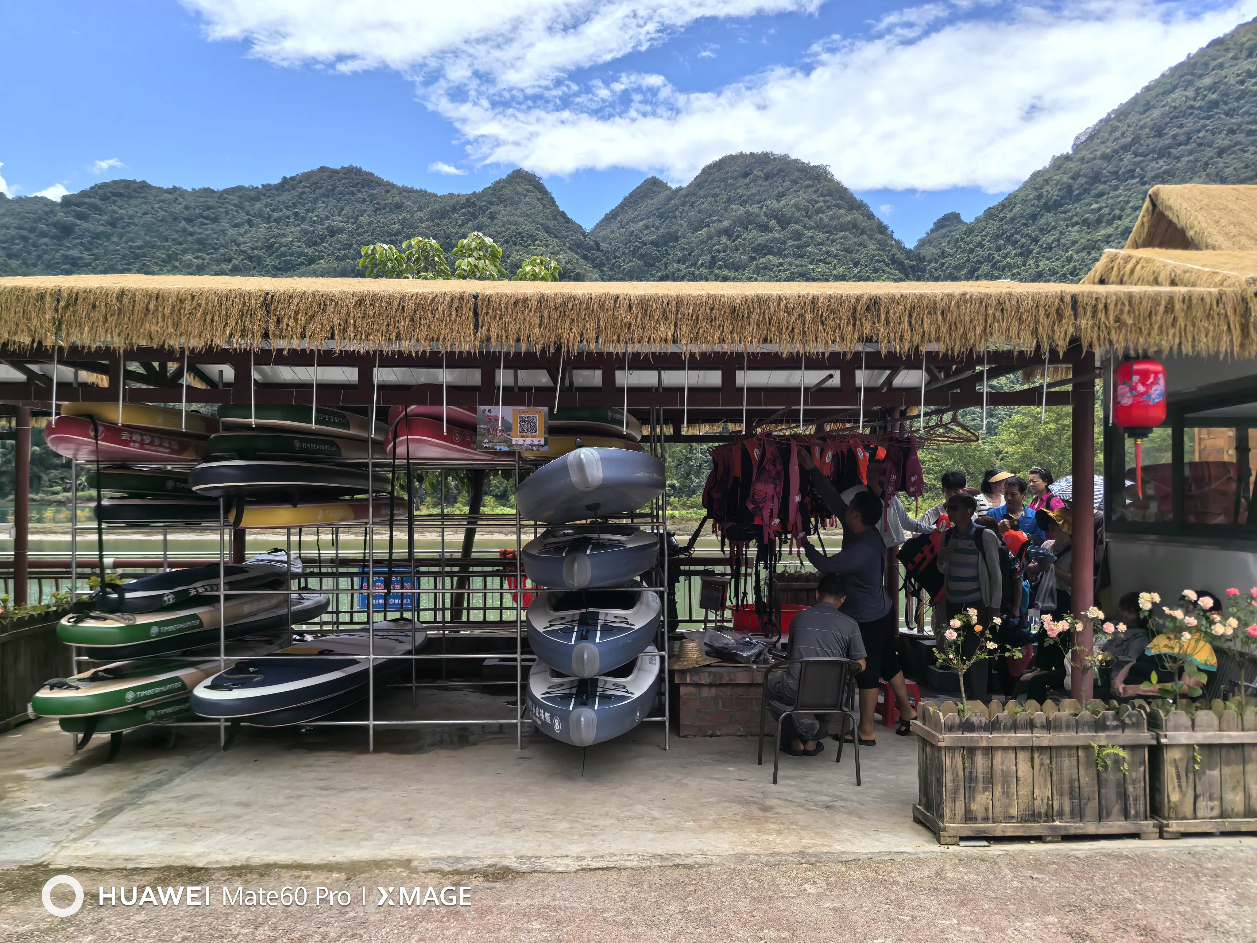 水上项目游玩的竹排