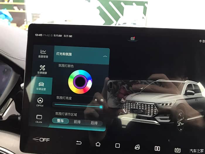 全车的氛围灯也很好看,多种颜色可以调节,我也很喜欢这个氛围灯。