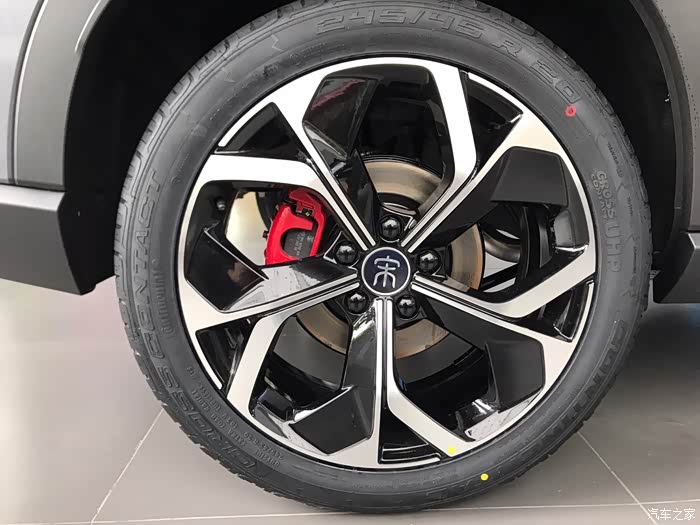 20寸的大轮毂,轮胎用的也是马牌轮胎,用料非常足,轮毂设计的也是非常的运动,红色的卡钳。