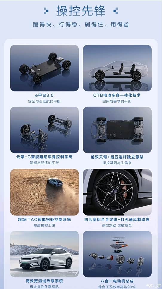 云辇-C智能阻尼系统,提升舒适性与操控性,前双叉臂+后五连杆悬架,四驱版配备四活塞卡钳,制动距离<36米。要颜值有颜值,要操控,有操控,舒适度还不错。