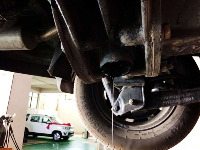 在放油的过程中可以跟着维修师傅检查一下地盘和轮胎!