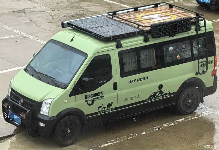 车前安装了保险杠,配备了侧边帐,行李架,爬梯