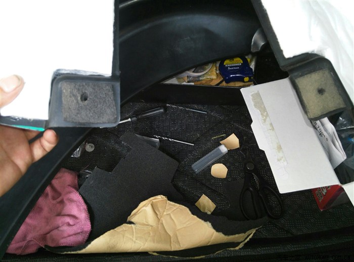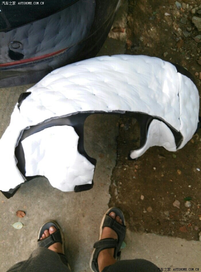 顺便说下这棉专业度是没别人原厂轮罩子里的好的 比如瑞虎5 这棉夹层丝棉很少也短 大部分是纸叠加在一起