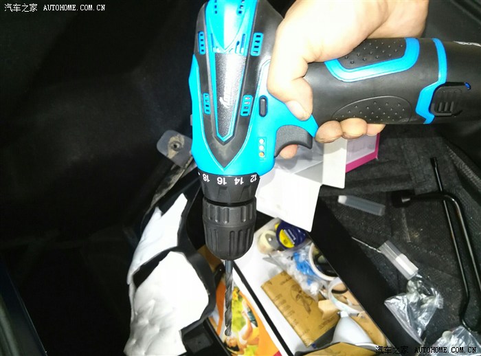 想着无损安装呢还是打孔 纠结了下 最终选择了打孔 要打三个孔 于是乎我买了把手钻 装电池的包邮114还送一些钻头
