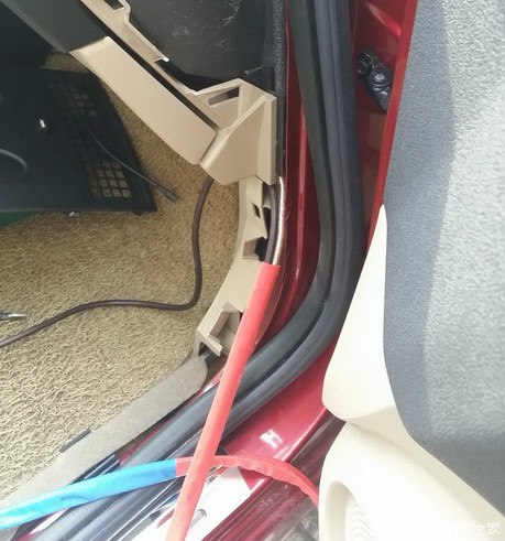 总线从右侧车门槛装饰板的底部通过,一直通到A柱的下面位置,再往上引。