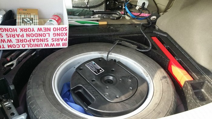 回到家,思考如何安排总体线路----总体规划,从后备箱引出一条线路到达驾驶台CD主机上面。考虑到备胎需要更换的可能性,总线在后备箱端设置电源线和讯号线的连接插口。