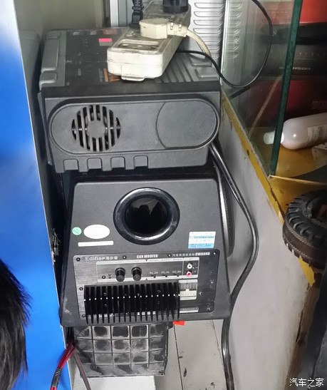 约好时间,赶去店里面看看----店堂里面,低音炮摆在地上连接线路