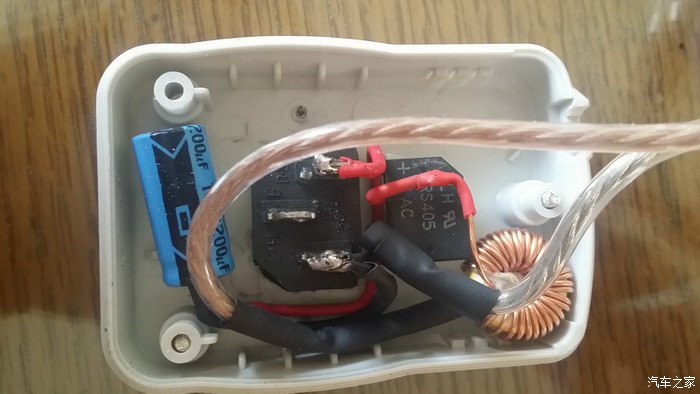 电脑电源器里面,有一颗桥式镇流器,联想到车用电瓶平时跟发电机同步使用,可能会对直流电带来波动。想当然的就利用上去,补充作为低音炮电源的进一步整流。〔使用这颗桥式整流器,最后失败,后面会提到〕