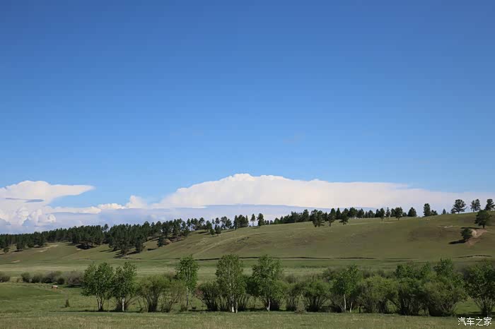 从阿尔山市到新巴尔虎左旗的路上,还有连绵起伏的小山包,不下雨啦,天蓝的让人心醉。。。