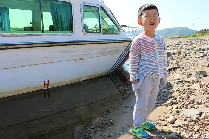 离老远宝贝儿子就看到了这条船,一定要和它合个影~