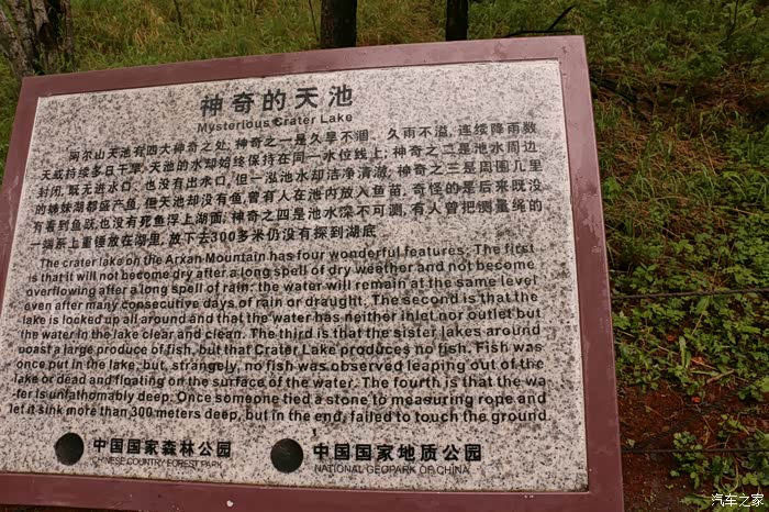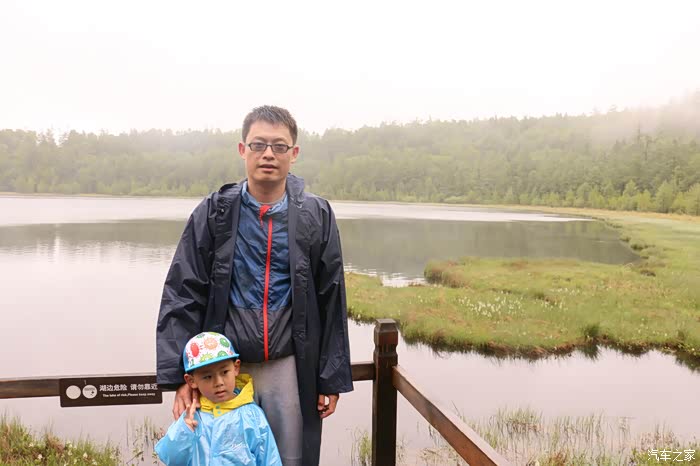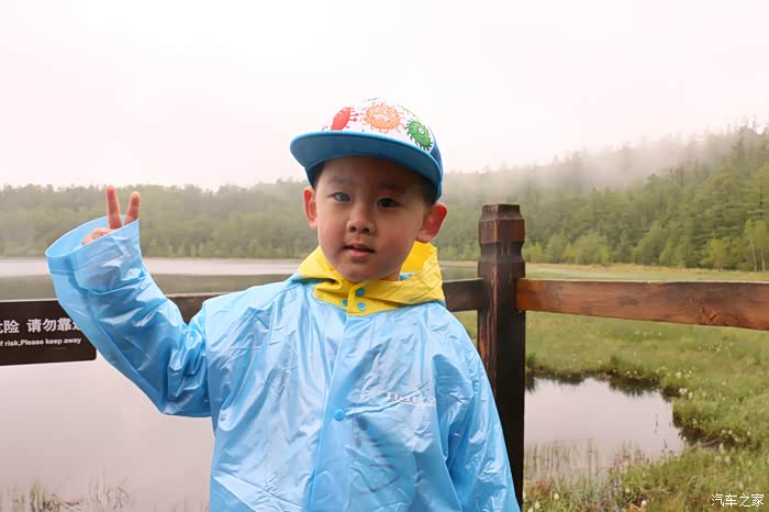 楼主和儿子~因为下雨,阿尔山当时的温度在13度左右,和沈阳温差几乎差了20度。。。准备不足,没带外套,我把车里的防晒服和雨衣一起穿上,还是觉得冷~