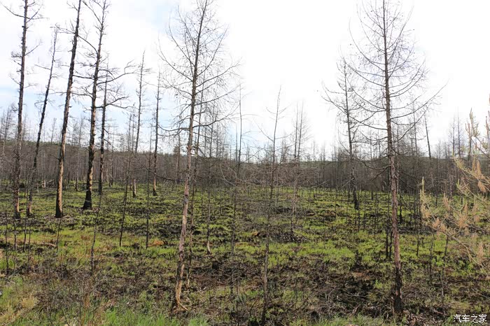 当年的火灾现场吧~提醒车友们如果吸烟的话,一定要在车内备个烟灰缸,吸过的烟头放到烟灰缸内,进入林区,一定注意防火~