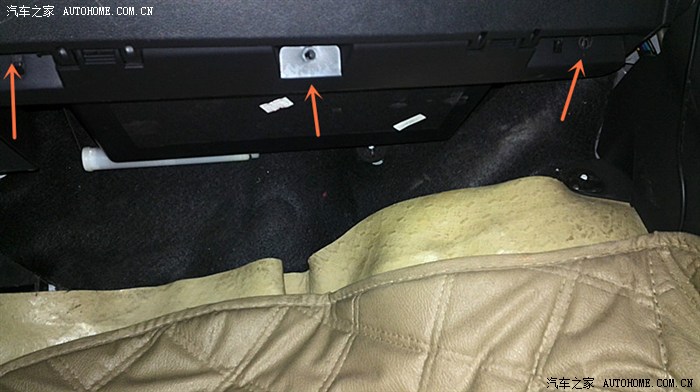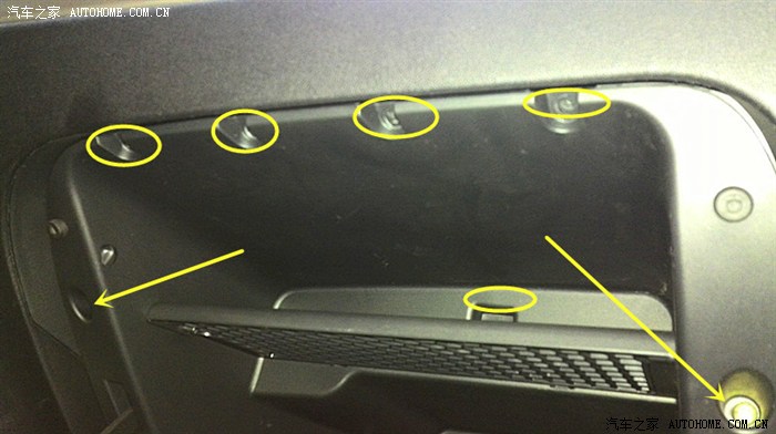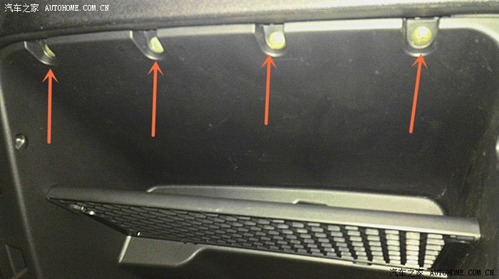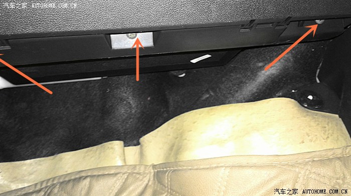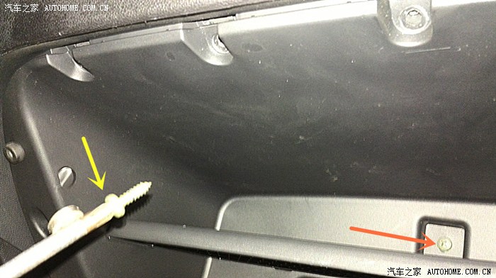 下面拆完3个。接着打开手套箱就能看到上面4个螺丝位置,继续卸掉