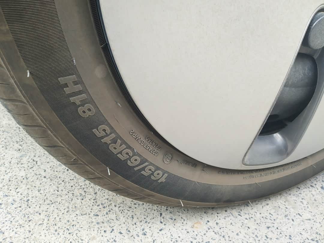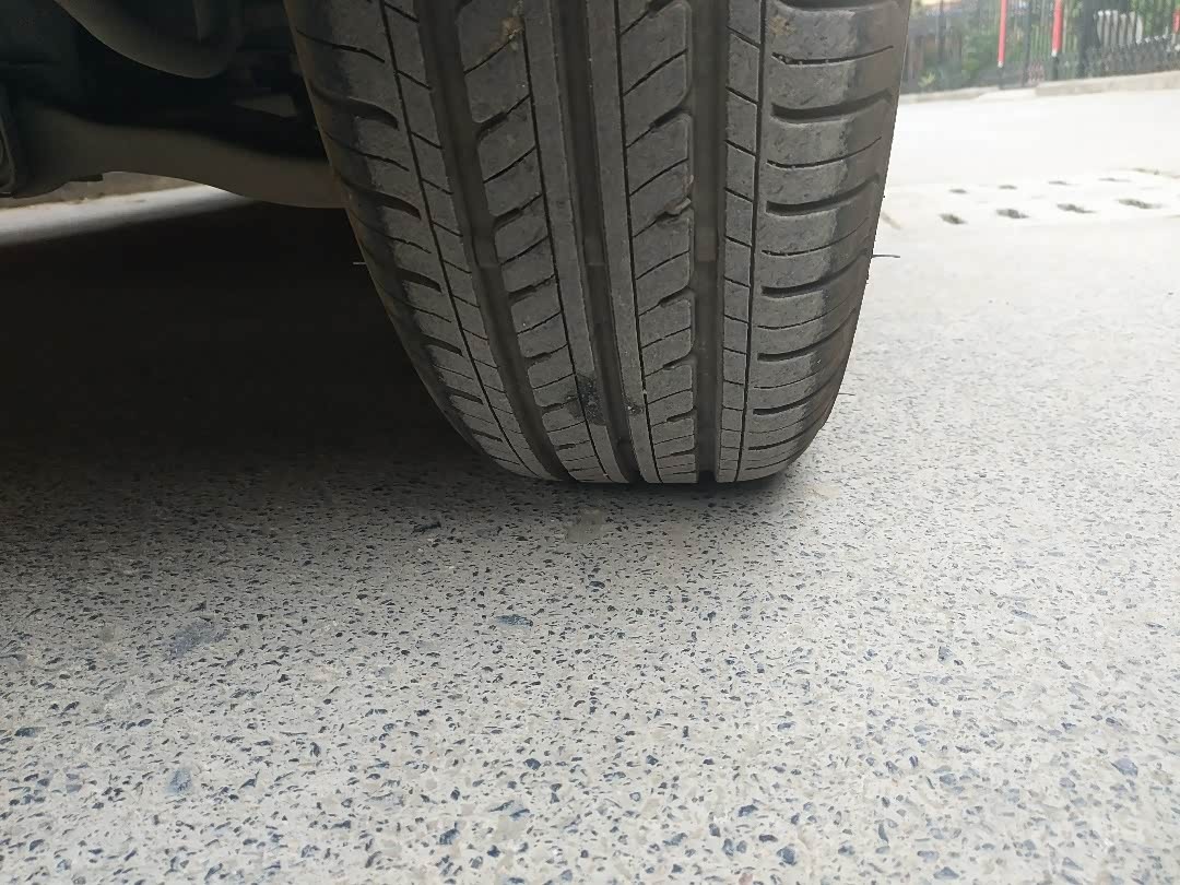看看我有一次把轮胎侧壁呲到路边,轮胎左半圈发黑
