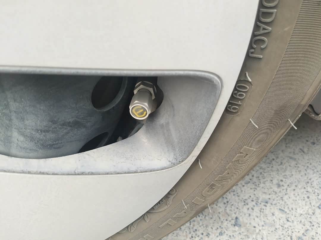 看看这个位置,轮毂罩和气嘴外露部分,如果换成外置式的胎压监测,会直接顶到或者蹭着轮毂罩,轮胎旋转振动,必定干扰到胎压监测感应器,久而久之,漏气失灵都有可能。