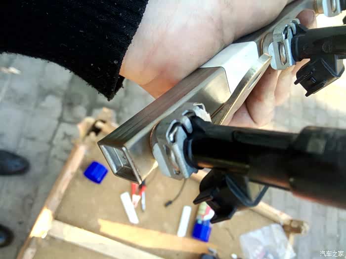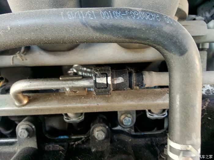 油管和喷油嘴支架的接头,按住上下两个卡子,就可以拔下来。