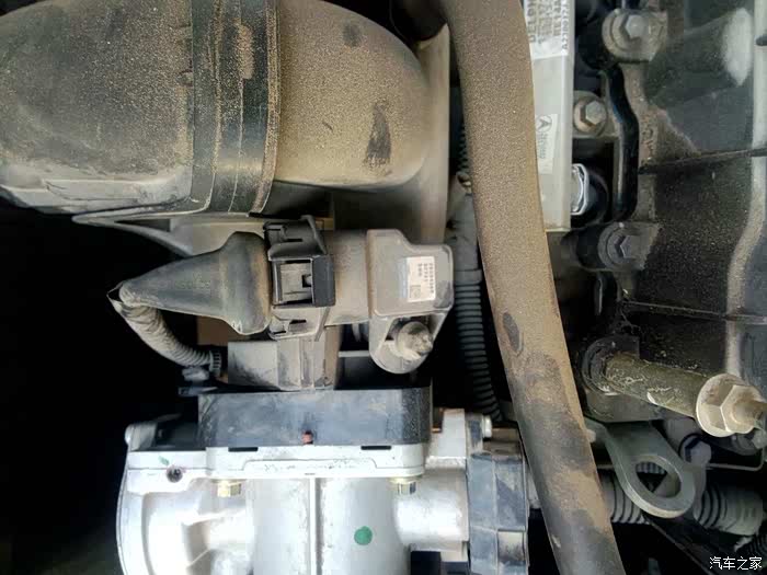 这个是进气压力传感器,松开旁边的螺丝就可以拆下来,用化清剂对着感应头 喷几下就可以,再原封安装上就可以,由于后面手机没电了,没有拍拆下来的照片,很简单,看一下就明白。