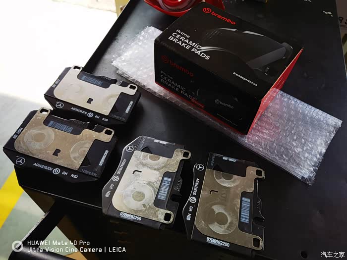 直到第二天早上出门,一踩刹车就刺耳的尖叫,刚开始还能勉强接受,毕竟GLC也响,后来越来越响,但刹车片还很新,就这么忍着,心想等到年后,天气渐渐变暖和,应该就不会这么刺耳了,等到今年底天冷了再换,起码不至于太浪费,然而天气是暖和了,尖叫声依然很刺耳,一到红灯踩刹车,就变成街上最靓的仔!搞得太尴尬了,在换之前我就有解决方案了,一咬牙晚点换早点换都是换,继续找到某雷博官方旗舰店买一套前轮陶瓷刹车片,带到某星行,朱老表亲自操刀,换!!!