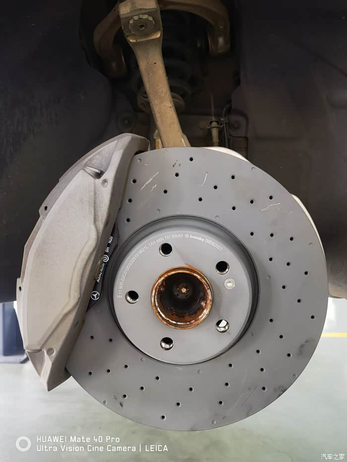 所以找来找去找到某雷博有一款符合奔驰刹车盘合头厚度的一体盘,因为一体盘强度比复合盘大太多,所以不用担心补完轮胎后大扭力打螺丝导致刹车盘面和合头错位,随之而来解决了踩刹车车子抖的问题。