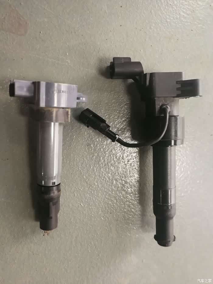 左边这个是原车高压包,右边的是这次换的特制的点火系统高压包。