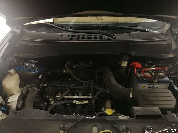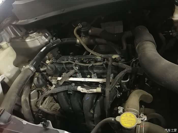 引擎盖打开,发动机盖板打开,我们的发动机舱就长这样。没怎么洗,都是灰,有点脏。嘿嘿
