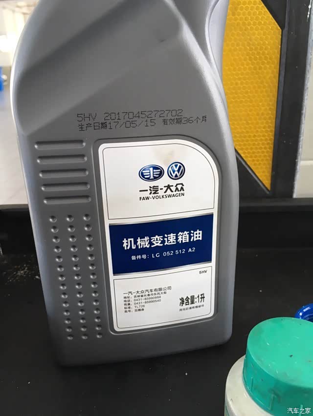 原厂变速箱油,日期还挺新。共2瓶,加入约1.7升左右。技师换油娴熟,加油量控制准确,很放心。